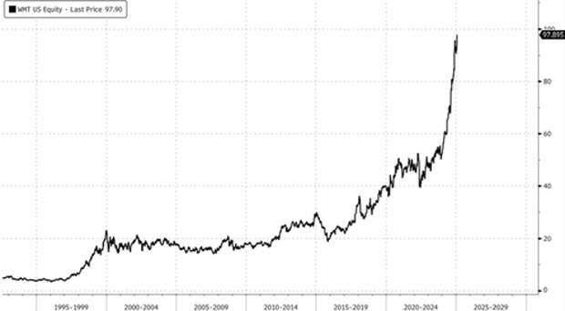 Goldman declared Walmart as the trade-down "winner" in the retail space. Shares have since erupted since 2023.