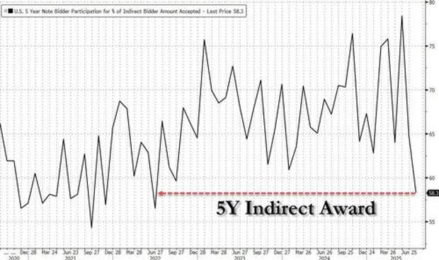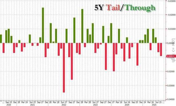 983%, up from 3.879% in June, and tailing the When Issued 3.975% by 0.8bps, the biggest tail for this maturity since last October.The bid to cover dropped to 2.31 from 2.36, the lowest since May 2024, and below the six auction average of 2.38.
