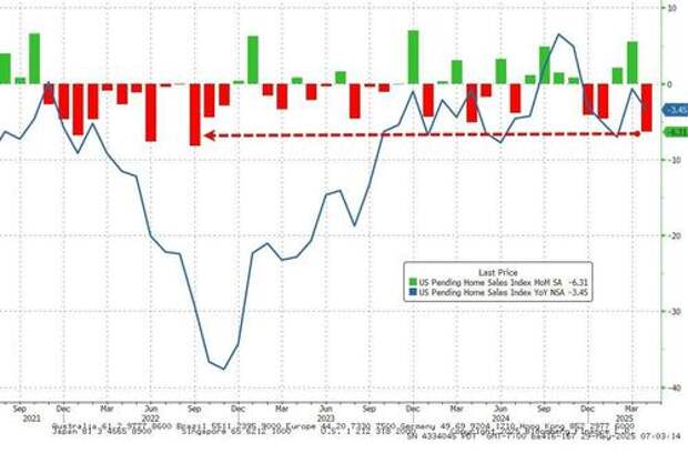 US Pending Home Sales plunged 6.3% MoM in April - far more than the 1.0% MoM decline expected (below all estimates) - and the biggest MoM drop since September 2022...
