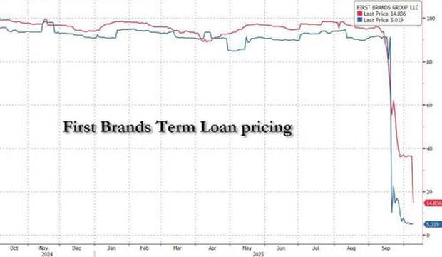 Hot on the heels of the spectacular implosion of subprime auto lender Tricolor (whose name is a not too subtle reference to the Mexican flag, and appropriately so as the company was almost exclusively targeting illegal aliens as its customers, so probably not a shock that it had a very unhappy ending), last month's mega bankruptcy was that of First Brands, an auto parts supplier with $5.8 billion in outstanding leveraged loan debt, yet it increasingly appears the company had far more liabilities than previously known as a result of what now learn learn, was extensive rehypothecation of said debt, a practice traditionally associated with such unregulated banana republics as China (who can possibly forget the country's copper rehypothecation scandal a decade ago). Adding to the complexity of this blistering meltdown, which has seen the company's debt trade from par to the teens in hours.
