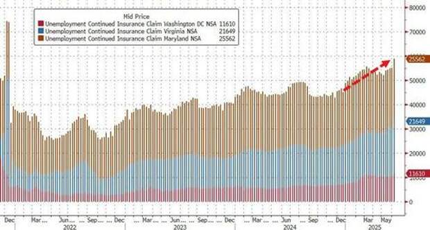 Continuing jobless claims in the 'Deep TriState' continue to soar, at their highest level since Dec 2021...