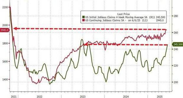 Continuing jobless claims remain above 1.9 million Americans (and the trend of initial claims keeps rising).