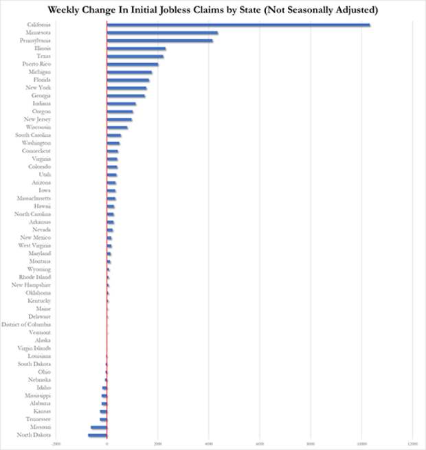 After the prior week's surge to 10-month highs (on the back of California claims suddenly soaring after Newsom introduced his brilliant $20 min wage fast food gambit), analysts expected a small dip in claims last week.