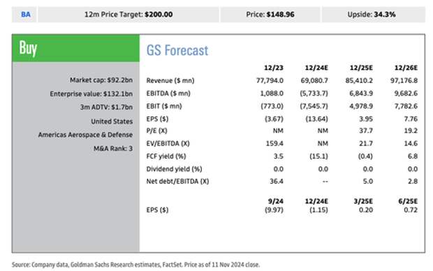 As of mid-November, Goldman's Noah Poponak and Anthony Valentini still had a "Buy" rating on the planemaker with a 12-month price target of $200.