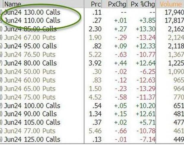 In the options market, some traders are betting that the worst of oil’s early-year malaise may be over, with contracts that would profit from a rally above $110 in June futures changing hands in large volumes.