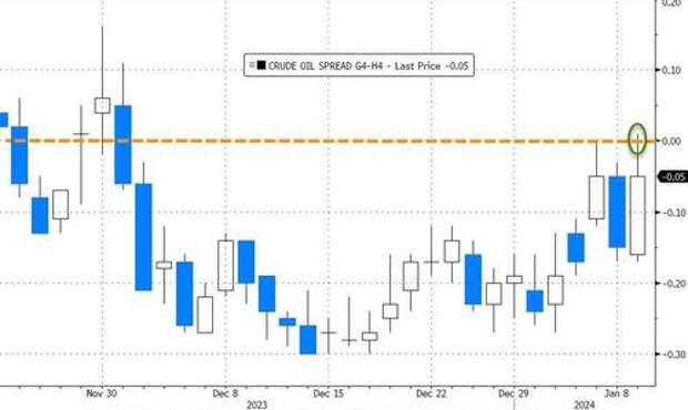 On the bright side (for oil bulls), the US benchmark’s prompt spread, a critical barometer for supply and demand, briefly flipped to a bullish structure known as backwardation for the first time since November.