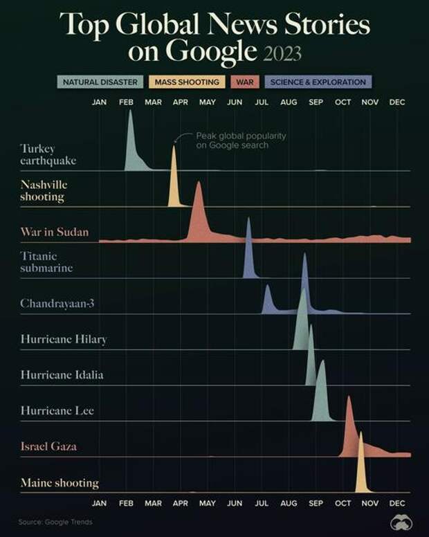 Visual Capitalist's Marcus Lu and Pallavi Rao visualize the the top 10 news stories of 2023 according to Google Search trends.