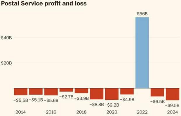The Department of Government Efficiency (DOGE) held its own meetings to explore drastic actions with the 250-year-old service.In November, USPS disclosed a net loss of $9.5 billion for the 2024 fiscal year -- a loss that was 46% worse than the service's $6.5 billion deficit in 2023. The plunge came alongside a slight uptick in revenue enabled by the latest annual increase in postage rates, pursuant to the 2021 Delivering for America plan. That program was supposed to help the perennially-profitless behemoth "achieve financial sustainability and service excellence." The service also has a crummy balance sheet, with nearly $80 billion in liabilities.