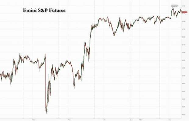US equity futures and global markets are higher as Russian and US officials met to negotiate an end to the three-year war in Ukraine. As of 8:00am ET, both S&P and Nasdaq futures are 0.4% higher, with Mag7 names all higher ex META (GOOGL +0.
