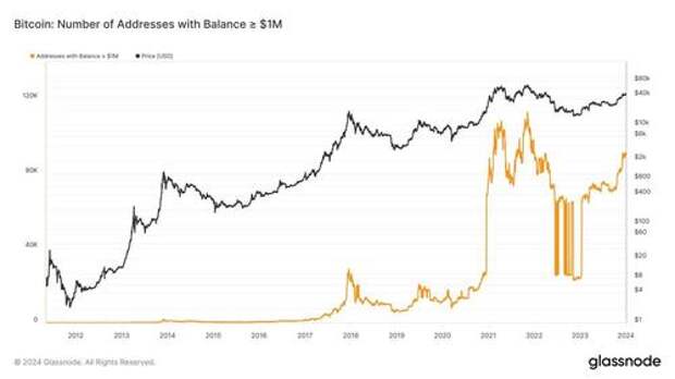 As CoinTelegraph's William Suberg reports, data shows that the number of wallets containing BTC worth at least $1 million is up nearly 300% since the start of 2023.