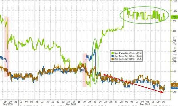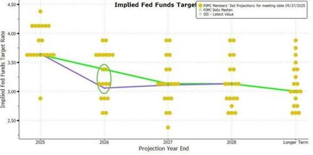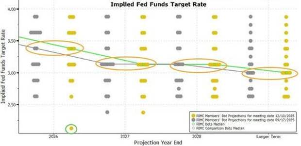 In fact, arguably 2026 dots show a very slight dovish tilt from September (with the number of Fed voters wanting no cuts or a hike down from 8 to 7...