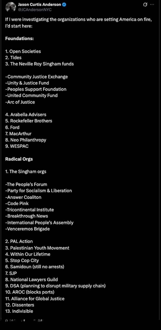 Both the dark money foundation world and the activist nonprofits are completely unregulated. There are no clear deliverables, no safeguards to ensure they are working in the public good, and when they burn a city down, they are never held responsible.