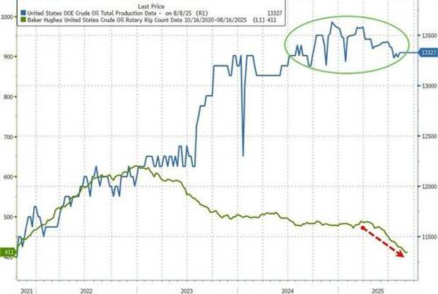 US Crude production inched higher last week (amid ongoing trend lower in rig counts)...