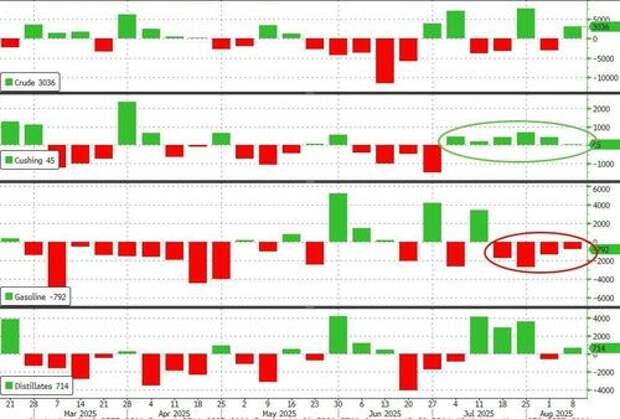 The official data confirmed API's surprise build for crude stocks as the Cushing hub saw stocks rise fo rthe 6th straight week (though only modestly last week)...
