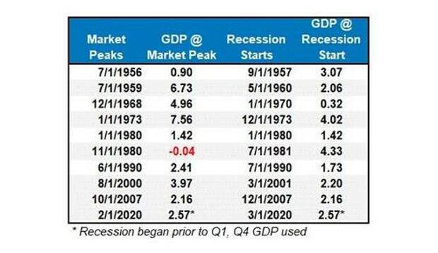 Furthermore, while the recent nominal sales data was robust, it is crucial to remember the economic data has a significant lag. Each of the dates below shows the economy’s growth rate immediately before the onset of a recession. You will note in the table that in 7 of the last 10 recessions, real GDP growth was running at 2% or above. In other words, according to the media, there was NO indication of a recession. But the next month, one began.