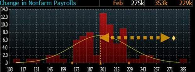 On the surface, it was (almost) another blockbuster jobs report, certainly one which nobody expected, or rather just one bank out of 76 expected. Starting at the top, the BLS reported that in February the US unexpectedly added 275K jobs, with just one research analyst (from Dai-Ichi Research) expecting a higher number.