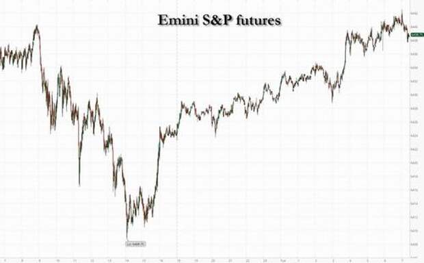 US equity futures are up again, and set for a 7th consecutive record high into a heavy earnings day and ahead of tomorrow's Fed decision as attention turns from trade deals to company results and economic data to justify nosebleed valuations.