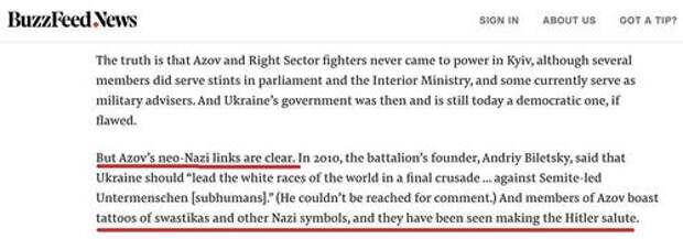 Above: BuzzFeed archived article writes that "Azov's neo-Nazi links are clear" while still hailing Ukraine's "democratic" but "flawed" government.