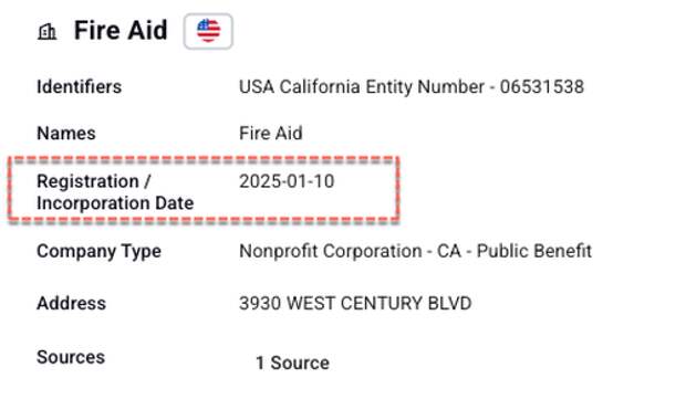 Public records indicate that FireAid appears to be a pop-up NGO, created solely to assist the thousands of Pacific Palisades residents left homeless after the wildfire destroyed their community.
