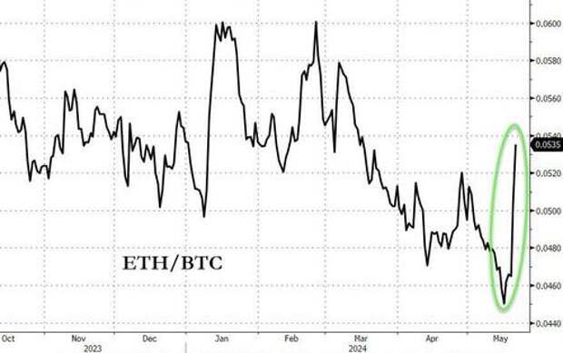 For context, ETH is now at its strongest relative to BTC since mid-March..