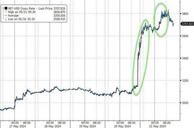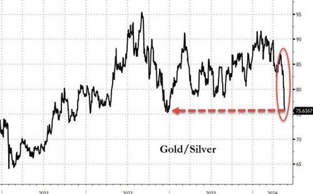 Silver continues to outperform gold, now at its strongest relative to the yellow metal since Dec 2022...