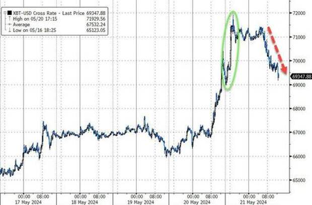 Bitcoin slipped back from its overnight surge back up near $72,000 to end basically flat on the day...