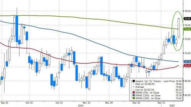 WTI broke above its 200DMA - also driving an acceleration in price as CTAs jump on board the move...