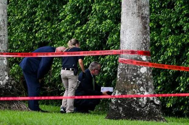 Law enforcement officials work at the crime scene outside the Trump International Golf Club in West Palm Beach, Florida, on September 16, 2024. Chandan Kahnna/AFP via Getty Images