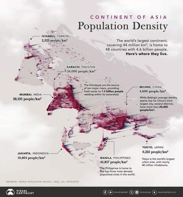 Visual Capitalist's Pallavi Rao visualizes Asia’s population patterns using data from WorldPop - a research group based out of the University of Southampton that tracks population growth and movement across the globe.