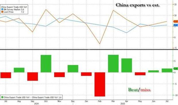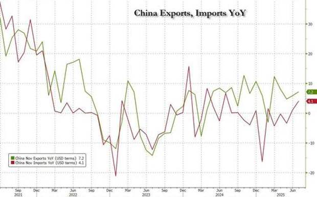 China’s exports rose faster than expected last month the latest customs "data" showed, ahead of next week's expiration of a tariff truce with the US which threatens to reignite trade tensions between the world’s economic superpowers if it is not extended, although it now appears another 90 days extension is pretty much assured.