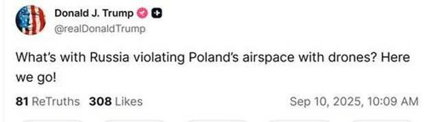Update(1120ET): Minutes ago, President Trump issued a somewhat cryptic statement on his Truth Social, as part of his initial reaction to the overnight alleged Russian drone breach incident in Poland.