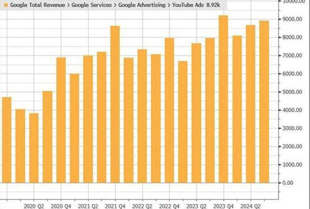 - YouTube ads revenue $8.92 billion, beating estimate $8.89 billion