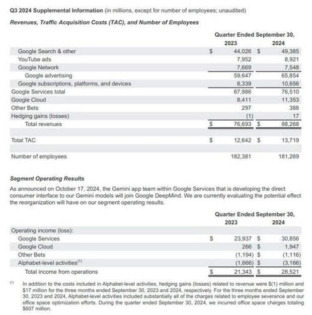- Google Services revenue $76.51 billion, beating estimate $75.24 billion