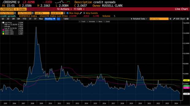 In 2016, US corporate credit spreads were relatively wide as fears of a China devaluation and recession took hold of the market.