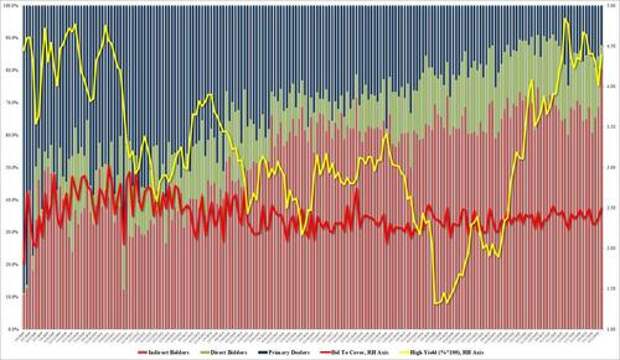 But the internals were where the auction truly shocked, because Indirects soared from 68.7% to a whopping 80.5%, the highest on record, as foreign central banks and various other entities just couldn't get enough paper.