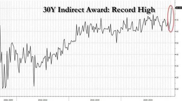 If this week's 3Y auction was subpar, yesterday's 10Y was mediocre, then today's 30Y auction was an absolute stunner. In fact, one could say it was the strongest 30Y auction on record.