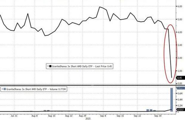 "We got our first termination event. The GraniteShares -3x AMD ETP in Europe is no longer. Forced termination, XIV-style..."