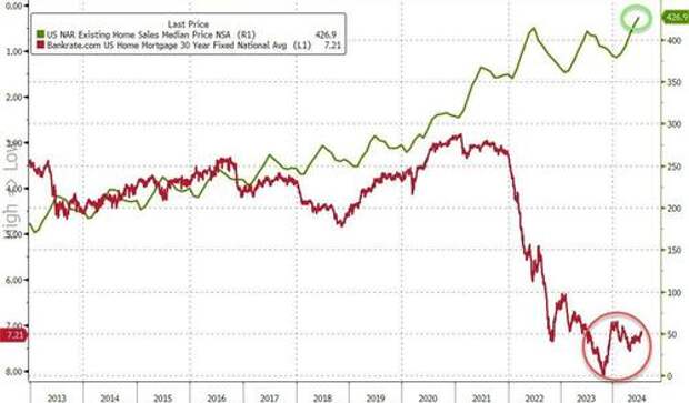 That's a new record high median price for existing homes in the US... and once again above the median price for a new home...