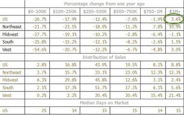 The only segment of the market that saw sales rise the $1 million-plus cohort - which saw sales rise 3.6% YoY...