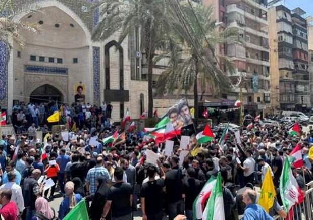 Some people brought pictures of Iran’s Supreme Leader Ayatollah Ali Khamenei, who had called for solidarity among the people after the Israeli strikes began.