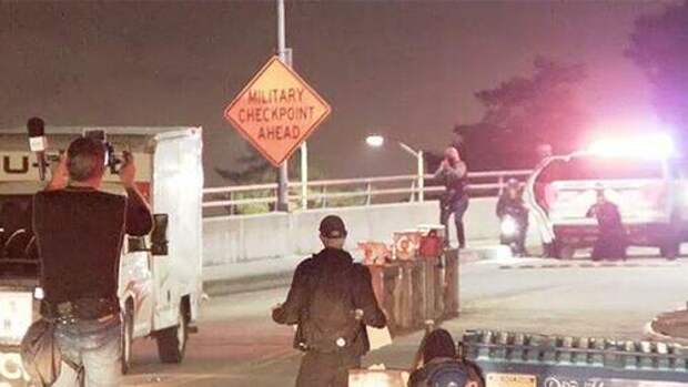 ... backed the box truck up to the military checkpoint, then floored it, only to be met with a hail of gunfire by base police, causing him to retreat in the opposite direction.