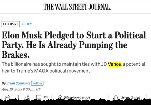 Focus on Tesla/SpaceX & GOP Ties: Musk is prioritizing his companies and preserving his relationship with Vice President JD Vance, seen as Trump's political successor. He has privately admitted forming a party could strain that alliance.