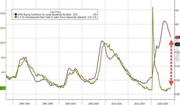Overall, UMich notes, that consumers are reserving judgment about the economy in light of the upcoming election, which, in the view of many consumers, could have a substantial impact on the trajectory of the economy.
