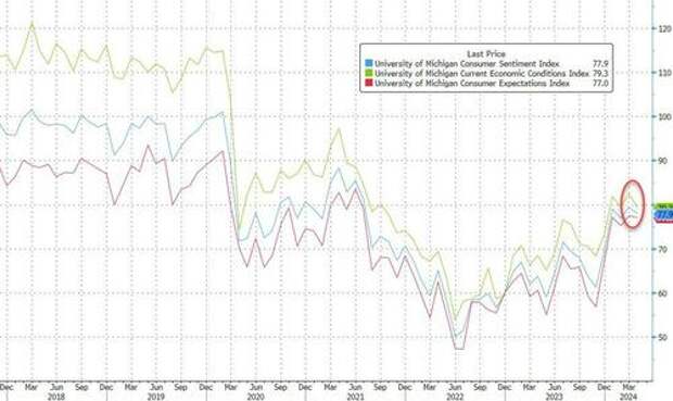 The headline UMich sentiment index declined, led by a drop in 'current conditions'...