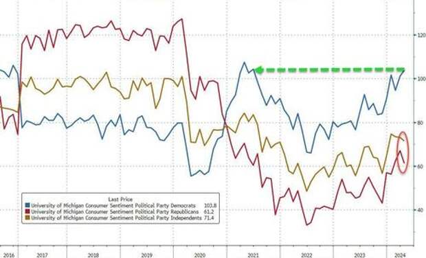 Democrats appear the most confident, with their sentiment pushing to its highest since June 2021. This as both Republicans and Independents saw confidence decline...