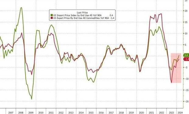 CPI is resurgent, PPI's trend is no longer lower, and this morning we saw import and export prices rising (or not falling) at their fastest pace in a year...
