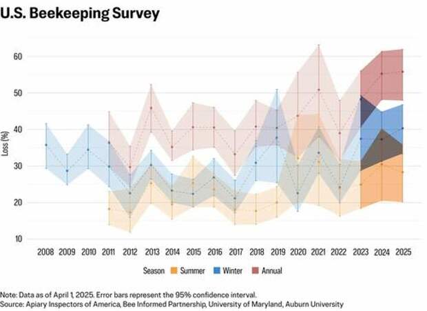Some beekeepers reported 80 percent or more hive losses, according to bee surveys.