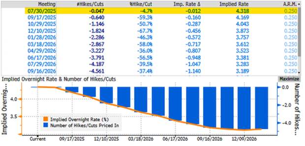 Existing home sales for June will be released on Wednesday, followed by new home sales on Thursday.While interest rate swaps still aren't pricing in a 25bps cut, political pressure is mounting. President Trump has renewed his attacks on Fed Chair Jerome Powell, accusing him of playing politics. He's been vocal about the urgent need to begin a rate-cutting cycle, claiming Powell is "late as usual."