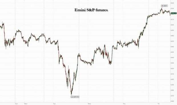 1% higher - reaching a new record high - but eased off the best levels of the session. Nasdaq contracts advanced 0.5%. In premarket trading, Broadcom rallied more than 9% following its pact with OpenAI to create an artificial-intelligence chip. Tesla rose 2% after the board proposed a potentially $1 trillion pay package for Elon Musk. US Treasuries were little changed, with the two-year yield near the lowest in almost a year. The dollar headed for its weakest showing this week. Commodities are mixed: oil and base metals are lower, while gold and ags are mostly higher.In premarket trading, Mag 7 stocks are mixed (Tesla +2%, Meta Platforms +0.3%, Microsoft +0.2%, Apple -0.1%, Amazon -0.3%, Alphabet -0.1%, Nvidia -0.8%) as Broadcom (AVGO) soars 11% after the chipmaker is said to be helping OpenAI design and produce an artificial intelligence accelerator from 2026. It also said that its artificial intelligence outlook will improve “significantly” in fiscal 2026.