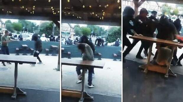 The “standing army” of police was no where to be seen as bystanders just minding their own business were violently attacked, presumably just for being white, and in one instance a pub with non-Muslim people inside was swarmed and vandalised.